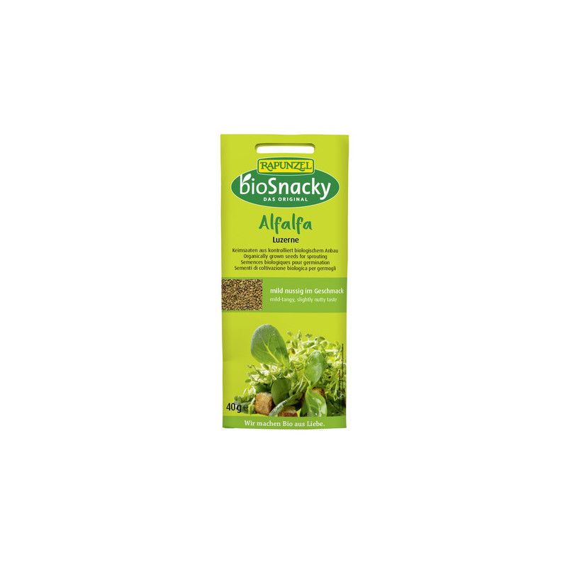 Applicazione I semi vengono messi a bagno e poi posti in un dispositivo di germinazione bioSnacky. Semi per ciotola: 1,5 cucchiai Ammollo: 4 ore Temperatura: 18-22° Irrigazione: 2 volte al giorno Raccolta: dopo 6-8 giorni Contenuto Semi di erba medica # # Da coltivazione biologica controllata Valori nutrizionali e risultati di analisi basati su 100 g Energia: 188 1 kJ / 45 kcal Grassi: 0,7 g - di cui acidi grassi saturi: 0,07 g Carboidrati: 2,4 g - di cui zuccheri: 1 g Proteine: 4 g Sale: 0,02 g