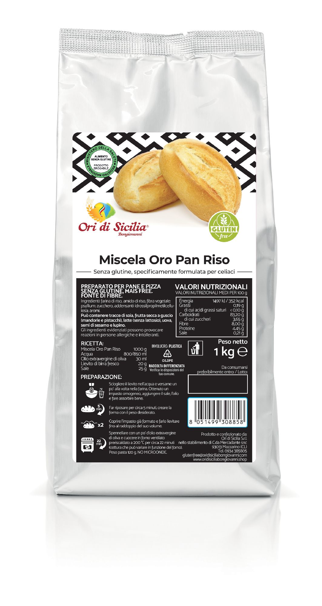 Miscela Senza Glutine Pan Riso per Pane e Pizza Mais Free - Ori di Sicilia