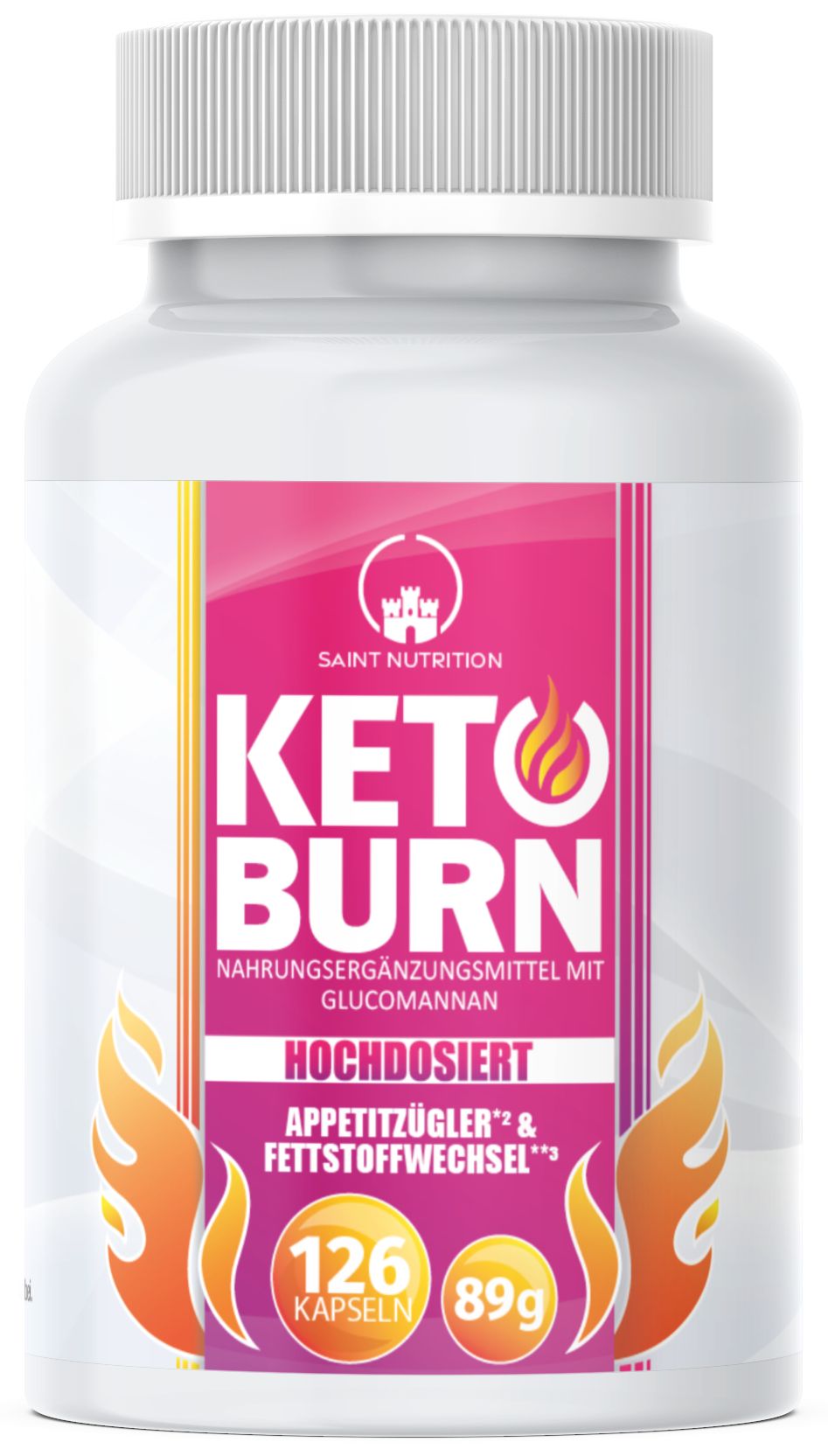 Saint Nutrition® Keto Burn Capsule – Per la tua alimentazione.* Glucomannano contribuisce alla perdita di peso nell'ambito di una dieta a basso contenuto calorico. **Il colina contribuisce al normale metabolismo dei grassi.