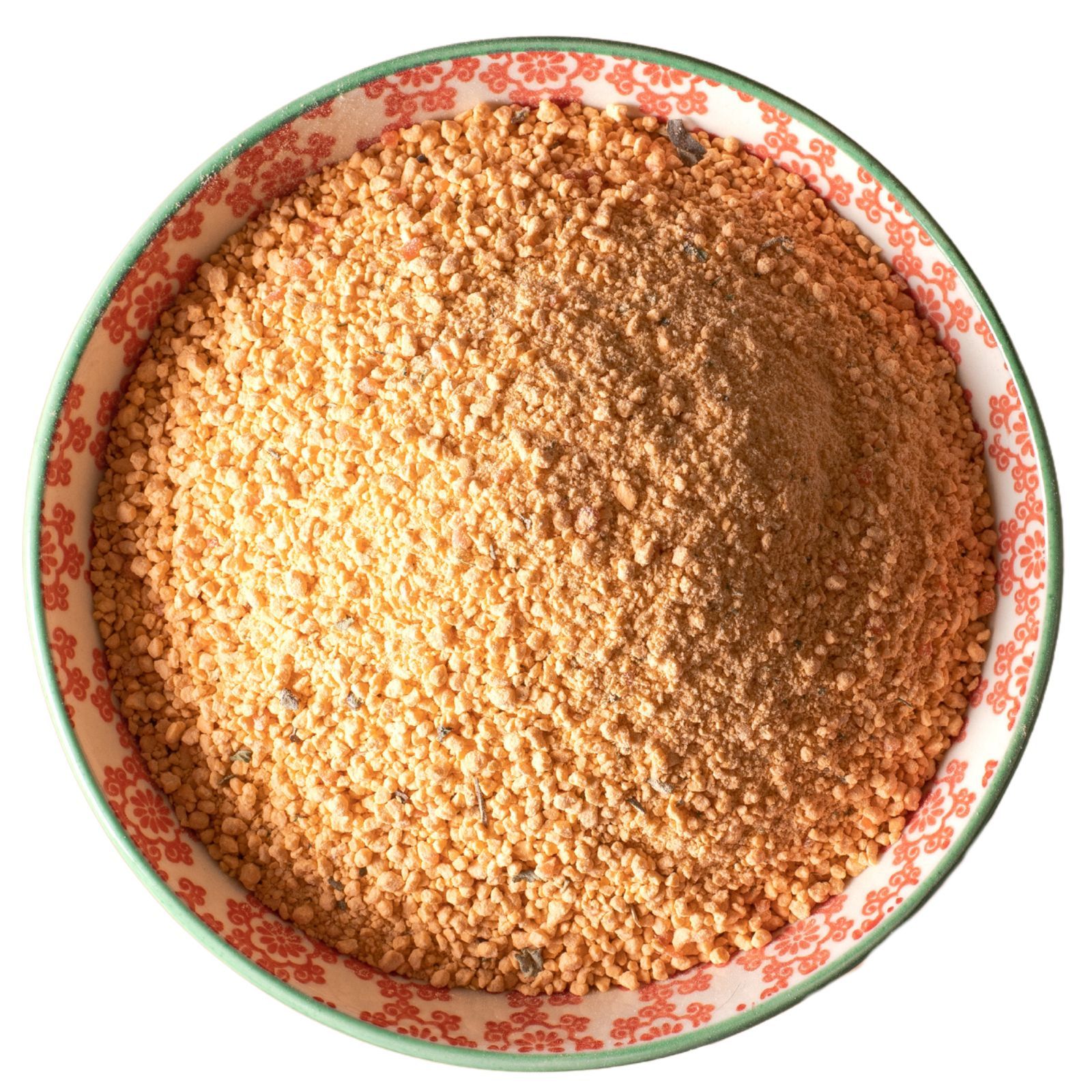 Farina integrale di grano, peperone rosso fresco, pomodoro fresco, yogurt passato, cipolla, menta secca, sale marino, pasta madre