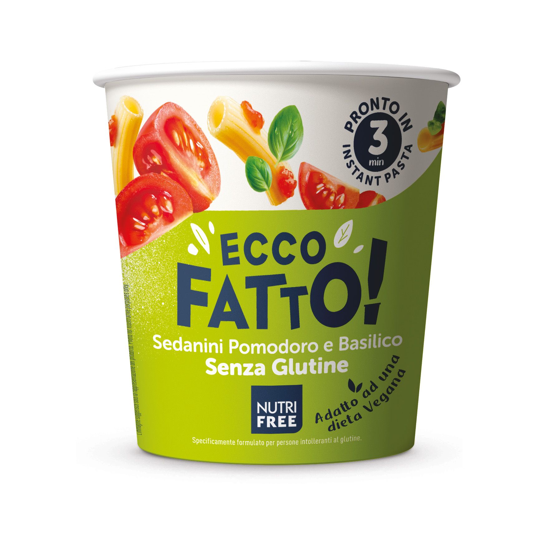 Pasta Pronta Senza Glutine Sedanini Pomodoro e Basilico Ecco Fatto - Nutrifree