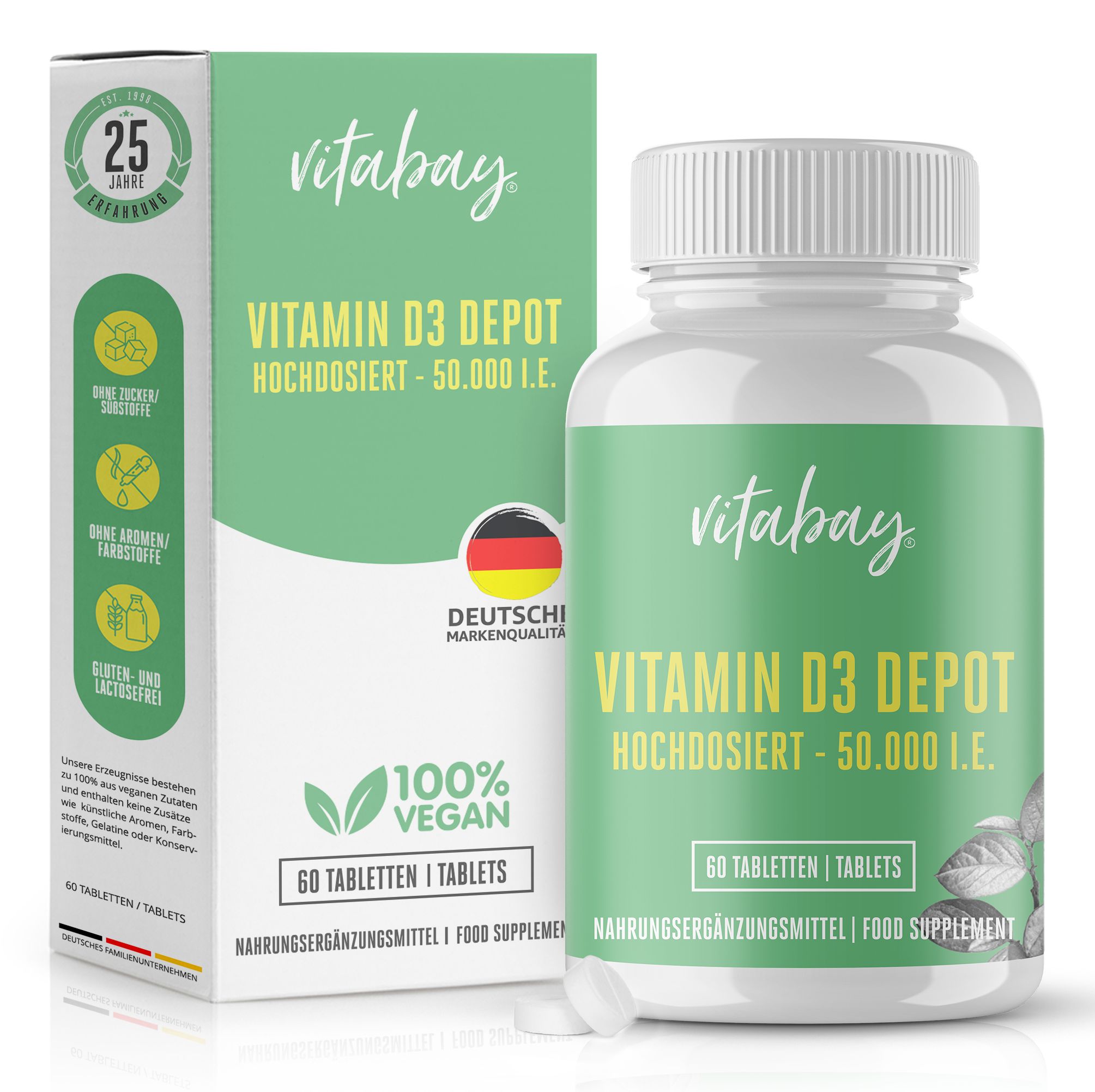 20 ANNI DI ESPERIENZA - Il nostro obiettivo è produrre le migliori compresse di vitamina D. I nostri 20 anni di esperienza ci permettono di produrre prodotti unici e delicati per la massima efficacia - Per il corpo solo il meglio!