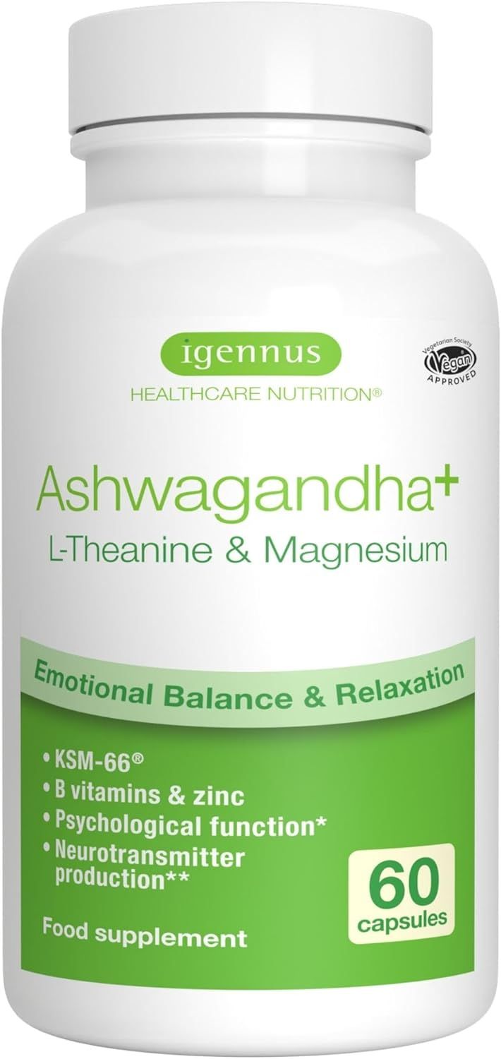 Igennus Ashwagandha KSM-66 Estratto di radice con L-Teanina e Magnesio