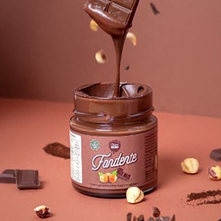 Edulcorante: maltitolo, olio extra vergine d’oliva (12%), olio di semi di girasole alto oleico, nocciole, proteine vegetali, cacao in polvere (15%) emulsionante: lecitina di girasole