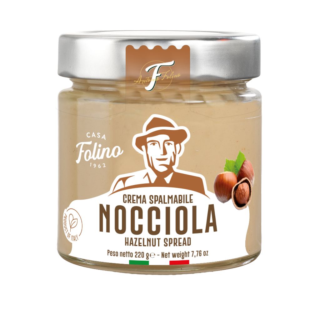 La Crema alla Nocciola CasaFolino unisce la dolcezza del cioccolato bianco all'aroma intenso delle migliori nocciole.