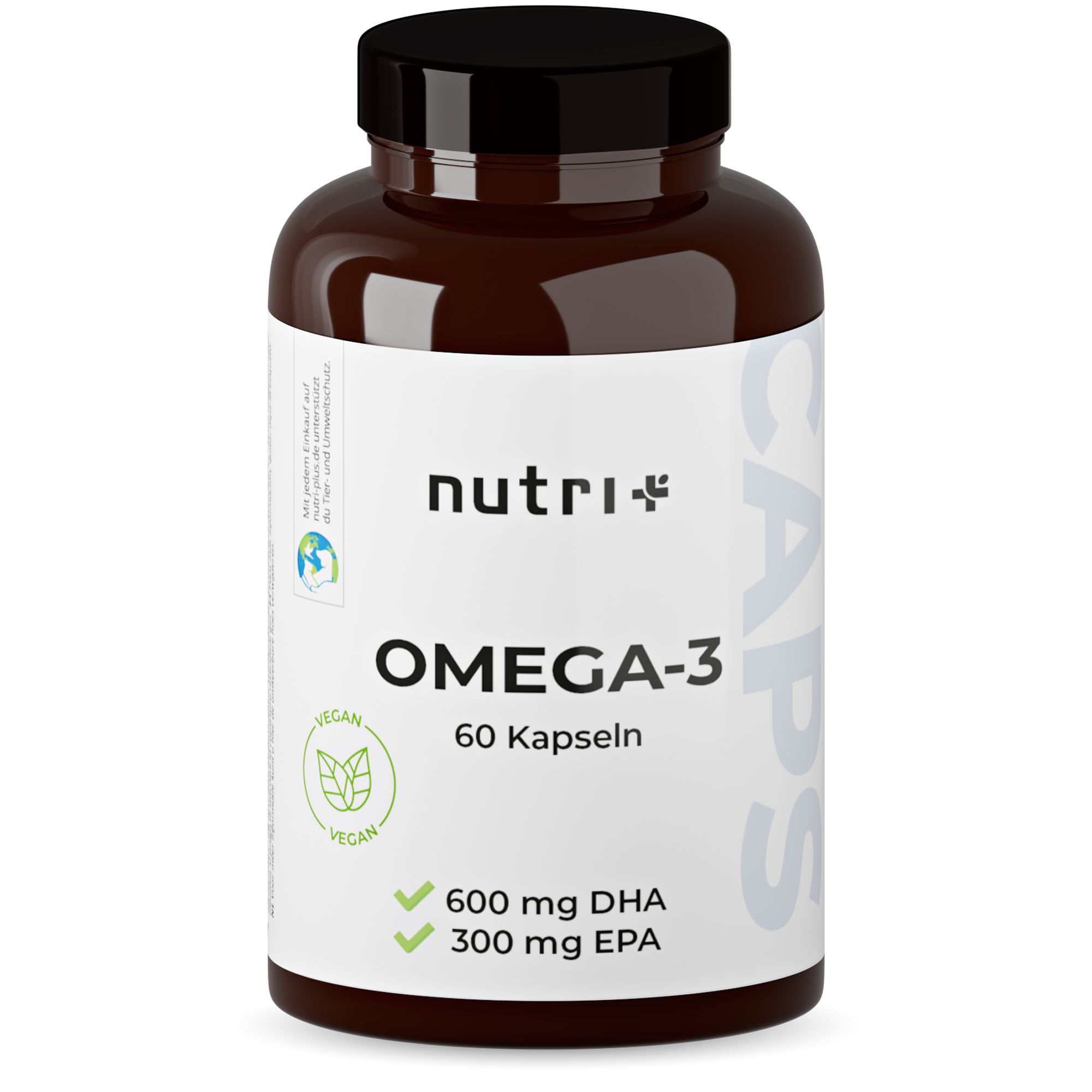 Sul mercato ci sono innumerevoli prodotti Omega-3. Le capsule nutri+ Omega-3 sono ottenute da olio di alghe e sono quindi 100 % vegane. Le alghe sono importanti componenti alimentari dei pesci marini e, pertanto, la fonte originaria di EPA e DHA.