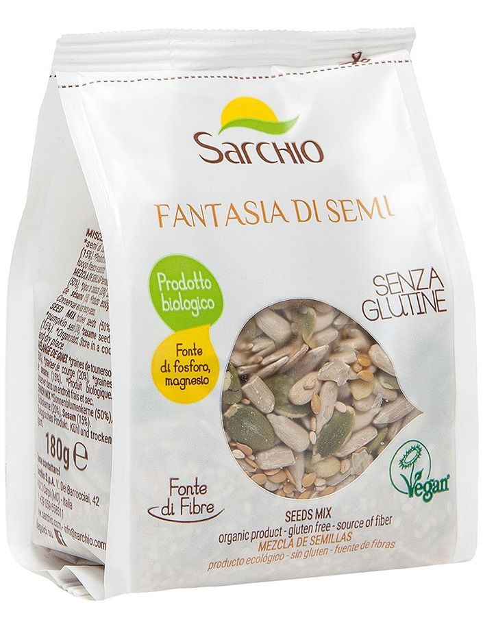 semi di girasole* (58%), semi di sesamo tostato* (22%), semi di zucca* (20%). *Prodotto biologico.