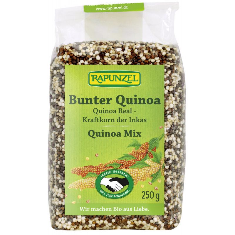 ✔ Quinoa reale delle Ande boliviane ✔ Per ciotole, insalate, dolci e altro ancora ✔ Quinoa Real coltivata in modo sostenibile e commercializzata in modo equo - quinoa reale. Questa varietà tradizionale e nobile proviene esclusivamente dalle alte quote delle Ande boliviane. Il grano energetico degli Inca viene coltivato in modo sostenibile e commercializzato equamente da agricoltori MANO NELLA MANO ad un'altitudine di 3.500 m. Con la sua granulometria più grande e il gusto delicato e di nocciola, lo pseudocereale può essere utilizzato in molti modi, ad esempio come contorno, per sformati, polpette, zuppe o insalate e per piatti dolci. La Quinoa Tricolore Colorata è un mix della classica quinoa bianca con la quinoa rossa e nera.