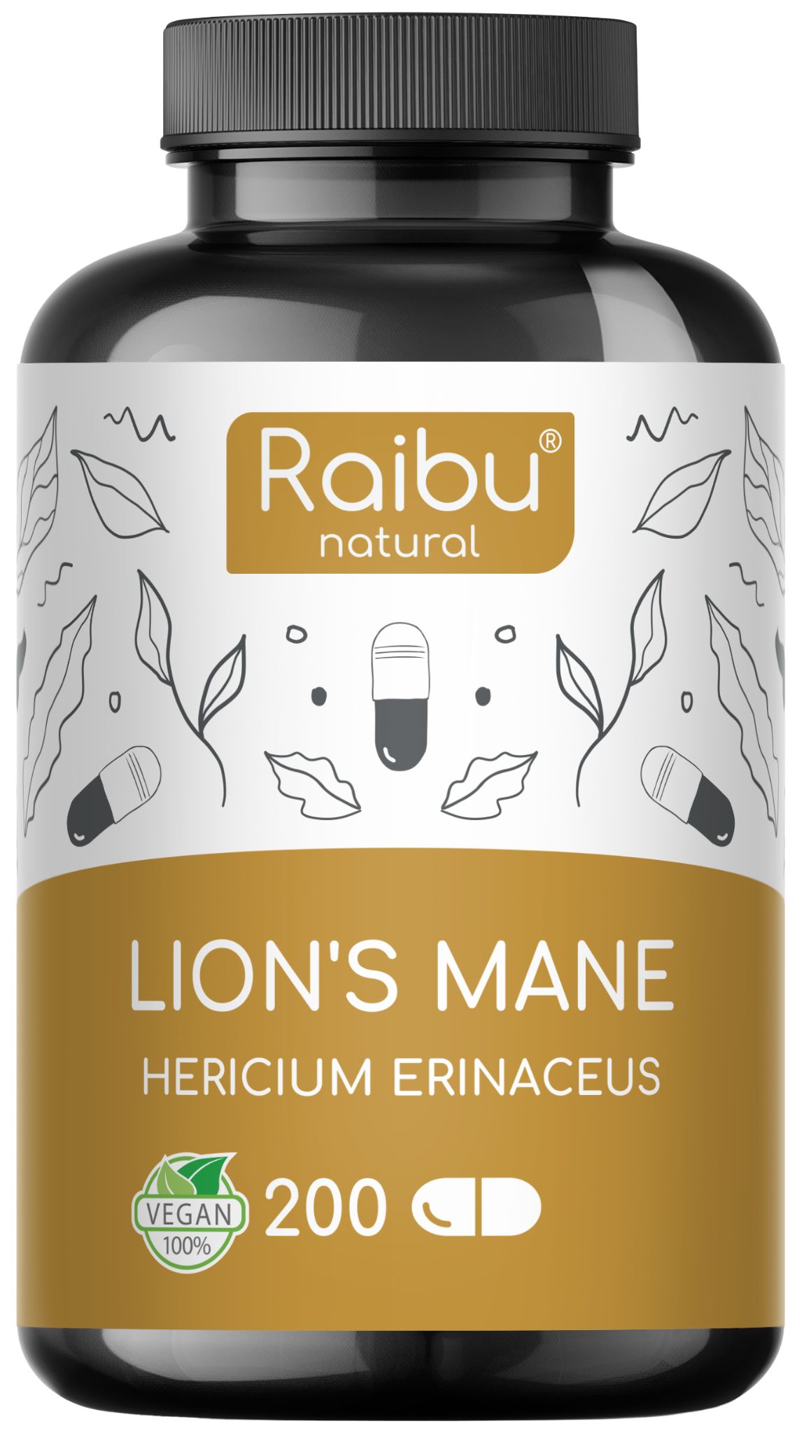 RAIBU – Hericium Erinaceus (Lion's Mane), Estratto 30:1 con Pepe Nero e Vitamina C