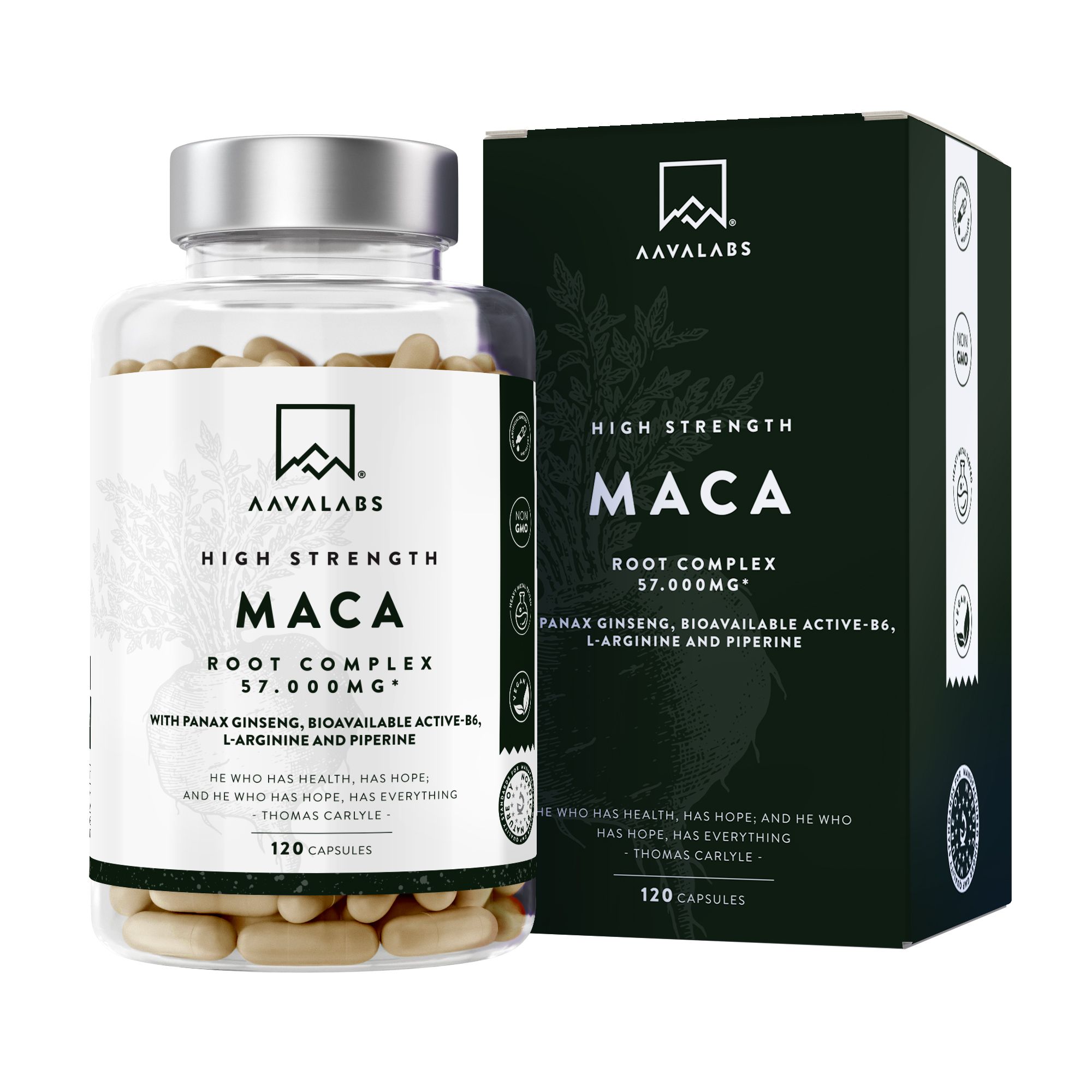 Aavalabs Maca Nera e Gialla con Ginseng | Equilibrio ormonale uomini & donne | Scorta +1 mesi