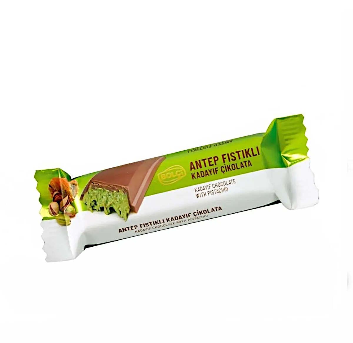 Combinazione celestiale: cioccolato delicato, croccante kadayif e pistacchi croccanti in un solo prodotto.
