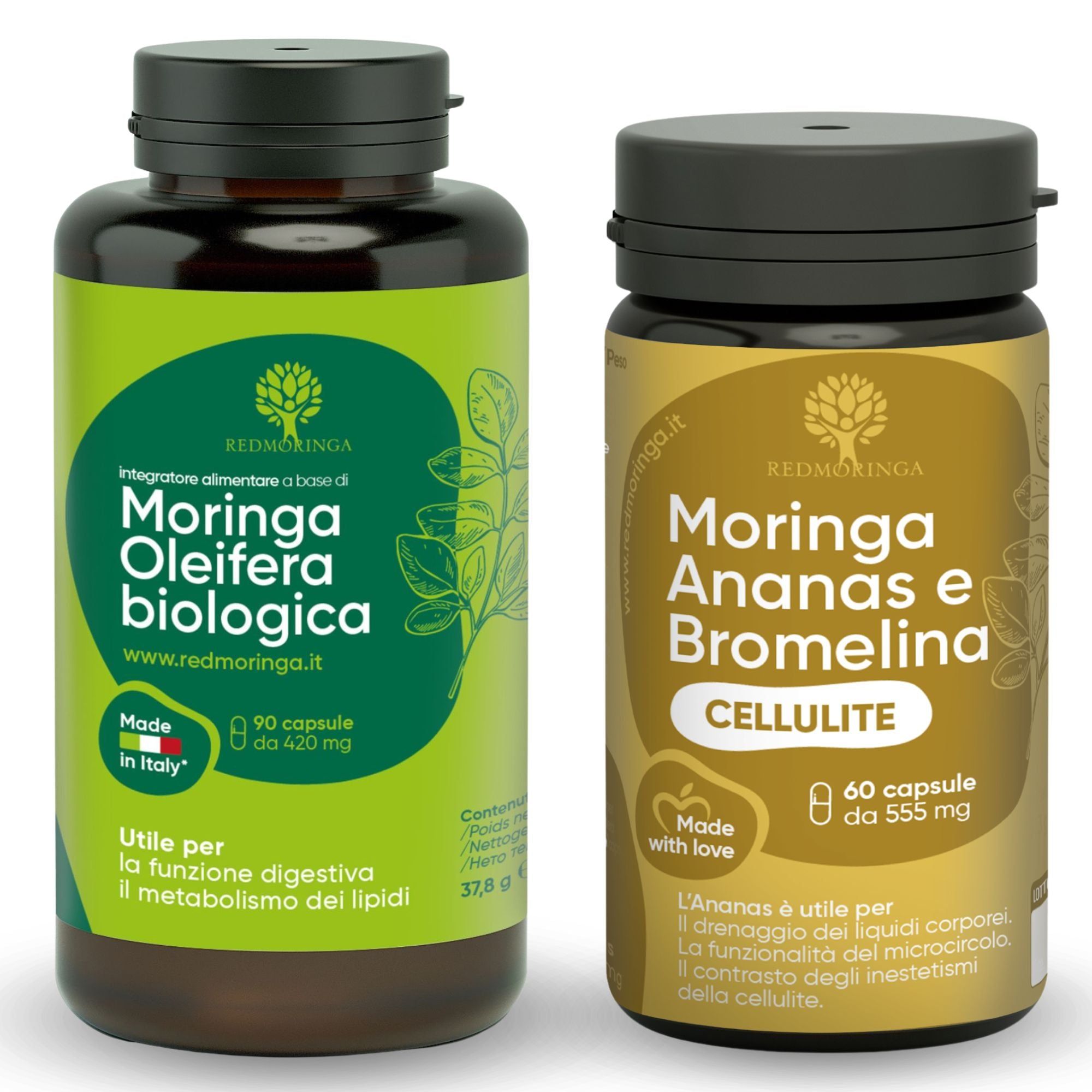 Ingredienti: Moringa (Moringa oleifera Lam., foglie) polvere, Bromelina 2500 GDU/g, Bromelina 5000 GDU/g, Ananas estratto secco a 250 GDU/g.
