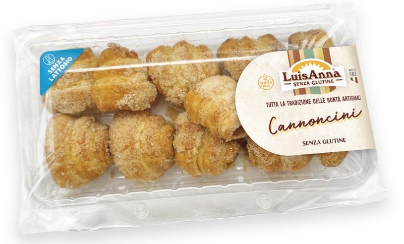l nuovi Cannoncini di sfoglia senza glutine e senza lattosio LuisAnna sono una golosità croccante e friabile. Da oggi puoi godere del piacere ad alta digeribilità senza rinunciare al gusto! Aspettano solo di essere farciti a piacimento con crema pasticciera o crema al cioccolato, sono perfetti da servire a fine pranzo o da gustare in compagnia di amici!