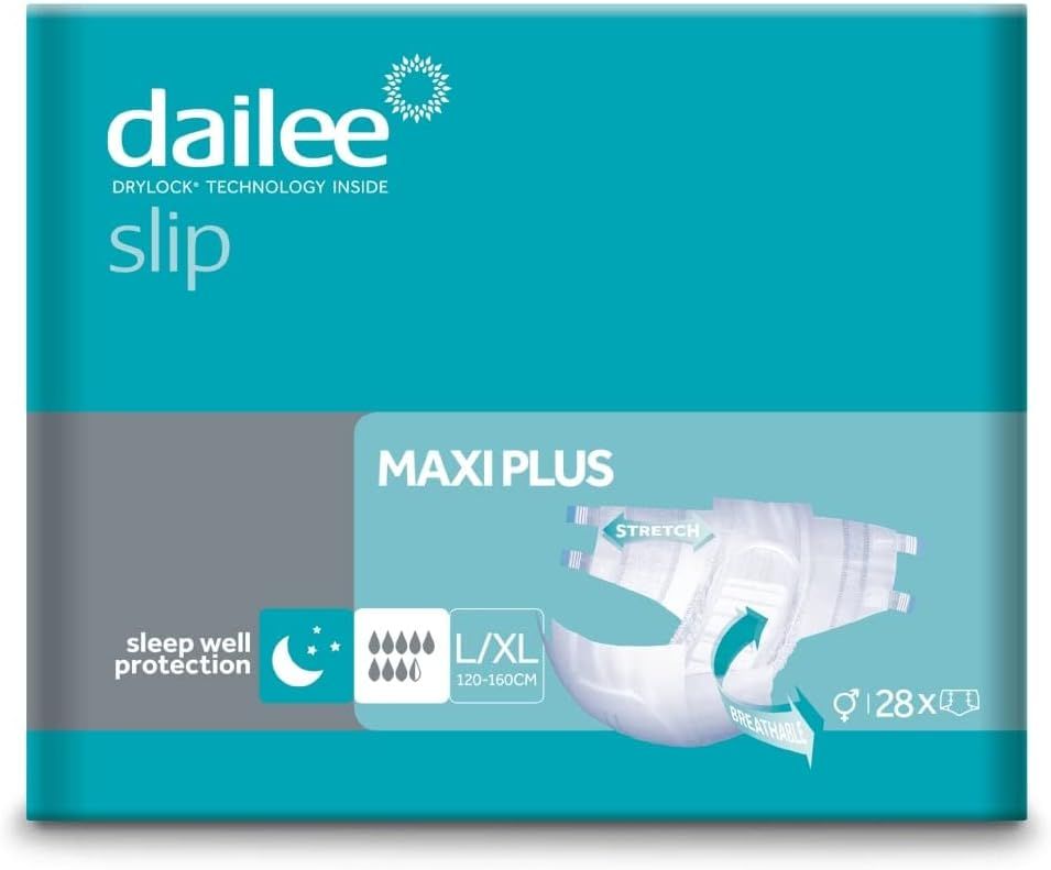 Dailee Slip Maxi Plus è il pannolone a mutandina con adesivi pensato per offrire una protezione avanzata in caso di incontinenza urinaria e fecale, anche grave. Grazie alla sua struttura assorbente e alla comoda chiusura laterale, garantisce comfort, sicurezza e traspirabilità in ogni momento della giornata.