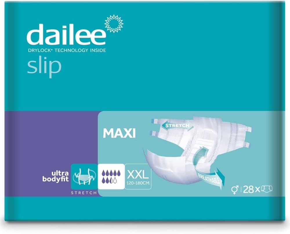 Dailee Slip Maxi è il pannolone a mutandina con adesivi pensato per offrire una protezione avanzata in caso di incontinenza urinaria e fecale, anche grave. Grazie alla sua struttura assorbente e alla comoda chiusura laterale, garantisce comfort, sicurezza e traspirabilità in ogni momento della giornata.