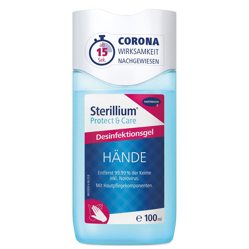 Il gel di disinfezione di Hartmann Sterilum® Protect & Care è adatto alla disinfezione a mano igienica per a casa e in viaggio. Mantieni le mani asciutte completamente bagnate di almeno 30 secondi. Particolare attenzione alle dita, al pollice e alle stanze delle aree.