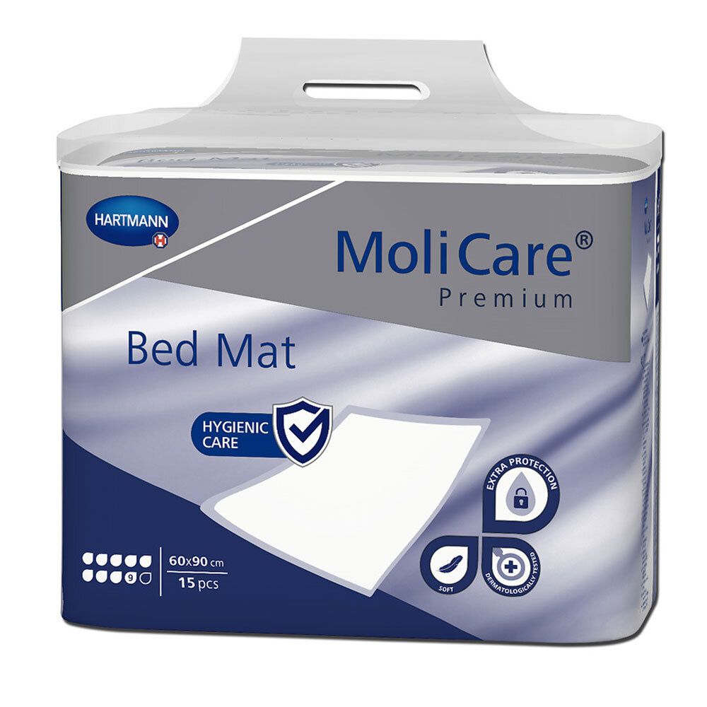 Documenti di protezione BETT MAT BETT MACICARE® con corpi di aspirazione particolarmente assorbenti realizzati in fiocchi di polpa e polimero superabsorbing per una protezione aggiuntiva con uno spessore di aspirazione di 9 gocce. Il cuscinetto medico assorbente offre protezione per diverse aree e documenti. Adatto per l'uso diretto come pad di incontinenza o come protezione aggiuntiva del letto quando si utilizzano assorbimento di prodotti di incontinenza in cliniche, anziani e case di cura e assistenza domiciliare.