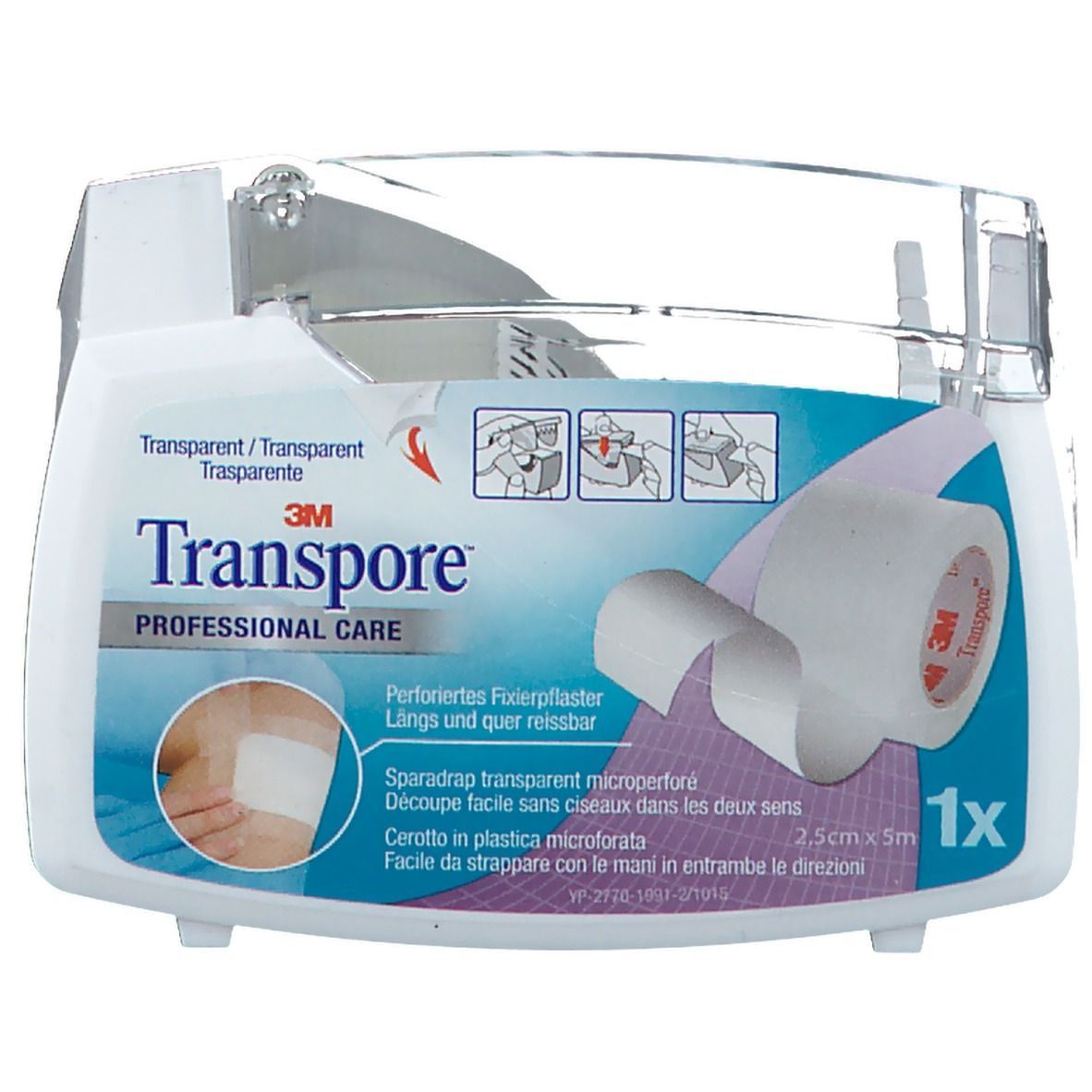 CEROTTO IN ROCCHETTO TRANSPORE CM 2,5 X 5 MT DISPENSER 1 PEZZO 3MTranspore Cerotto ipoallergenico in plastica, microtraforato, impermeabile, elastico e trasparente. Formato Rocchetto. Cod. 15270D / 15271D