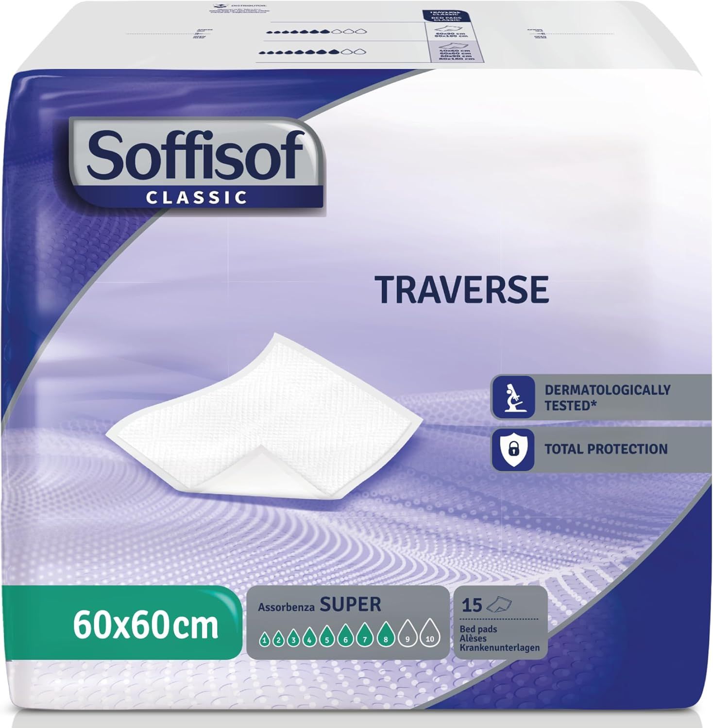 Soffisof Bed è la soluzione affidabile per proteggere materassi, poltrone e sedute da perdite di urina o altri liquidi. Le traverse assorbenti monouso sono disponibili in due formati per adattarsi a ogni esigenza: 60x90 cm per una copertura mirata e 80x180 cm con lembi rimboccabili per una protezione totale del letto.