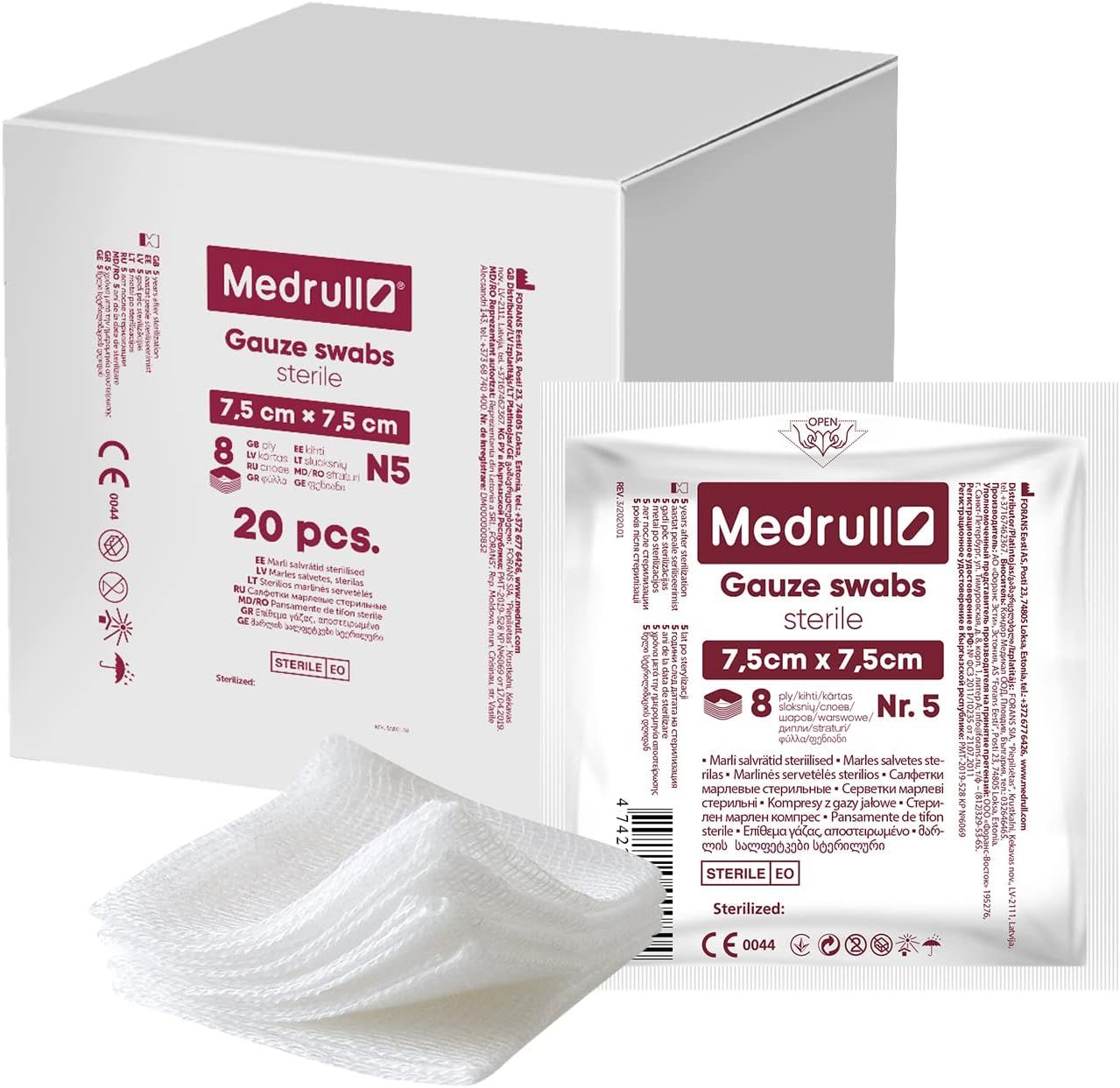 Medrull Tamponi di garza - Sterili - Medicazioni non adesive - Extra assorbenti - 8 veli -