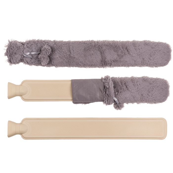 Scaldino a tubo, ca. 73 x 12 cm, Contenuto: ca. 2 litri, con copertura in pelliccia sintetica, 100% Poliestere