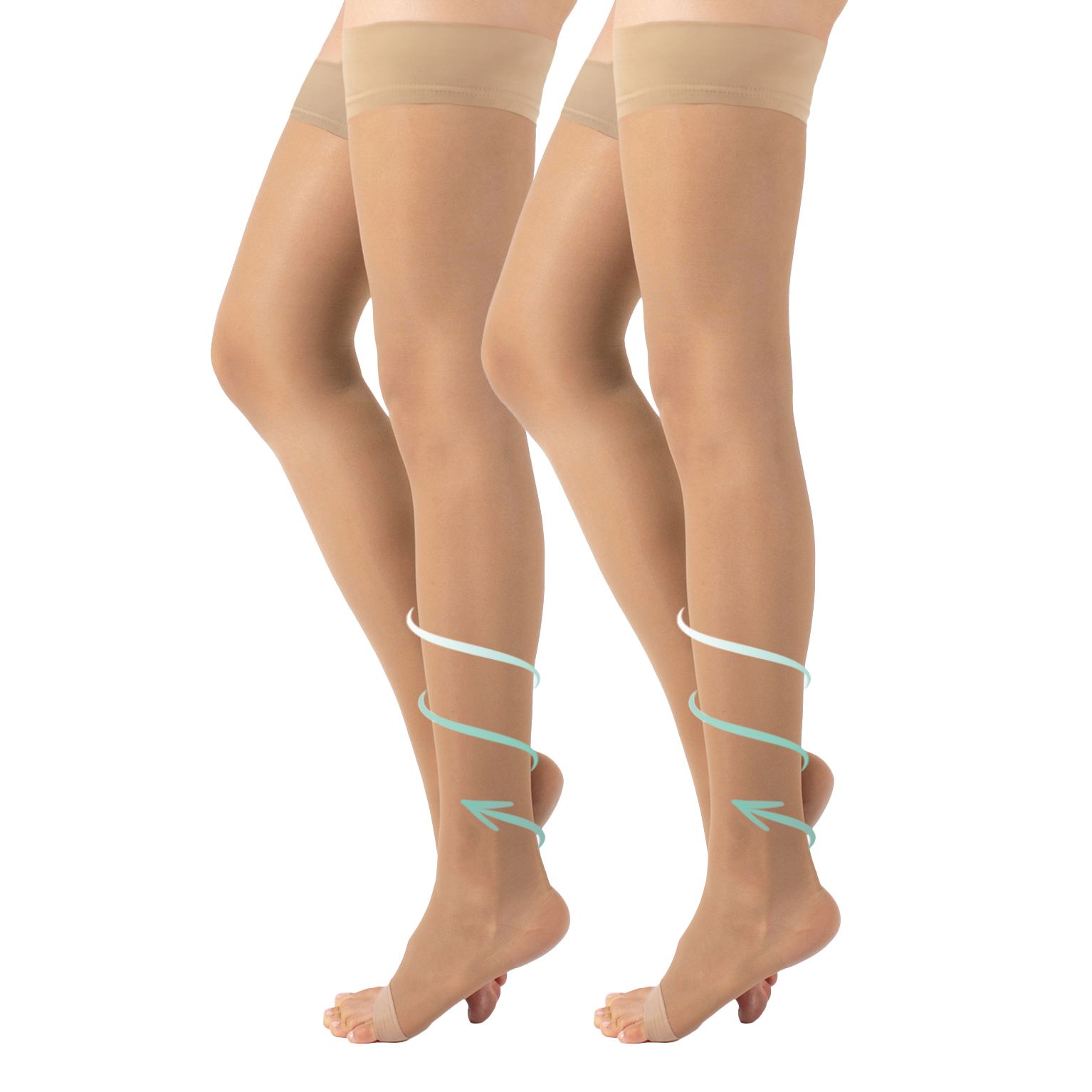 Calza autoreggente con la punta aperta e compressione forte 140 DEN 15-21 mm/Hg, per stimolare la circolazione sanguigna