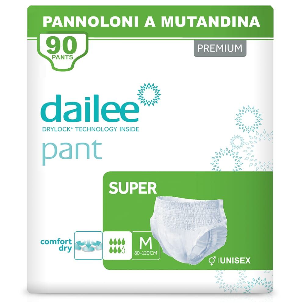 Affidati ai Dailee Pants Super per gestire ogni forma di incontinenza con un ausilio affidabile, discreto e super assorbente, studiato per offrire la massima libertà e comfort nella vita quotidiana.