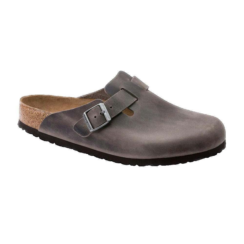 Scarpa unisex Boston di birkenstock in pelle nubuck grigia, comoda e adatta all'uso quotidiano.
