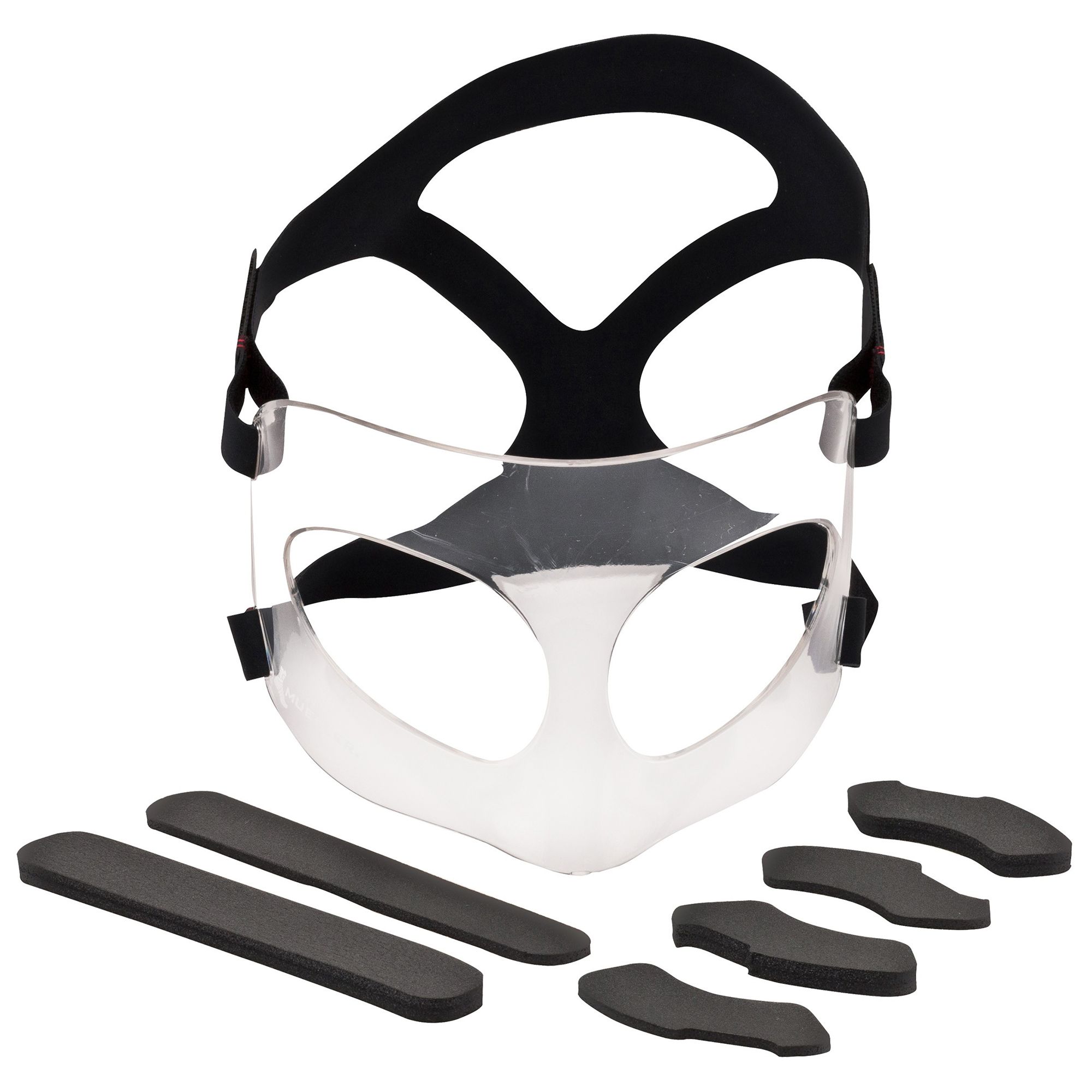 La protezione nasale Mueller Sports Medicine è una maschera di plastica altamente resistente agli urti. Può essere utilizzata in molti sport per proteggere il viso da infortuni. Particolarmente adatta per pallamano, wrestling, karate, baseball, calcio e altri sport in cui non vengono utilizzati caschi. La maschera si regola tramite cinghie con chiusura a velcro e diversi cuscini in schiuma da applicare all'interno della maschera. La forma anatomica della protezione si adatta molto bene ai diversi contorni del viso.