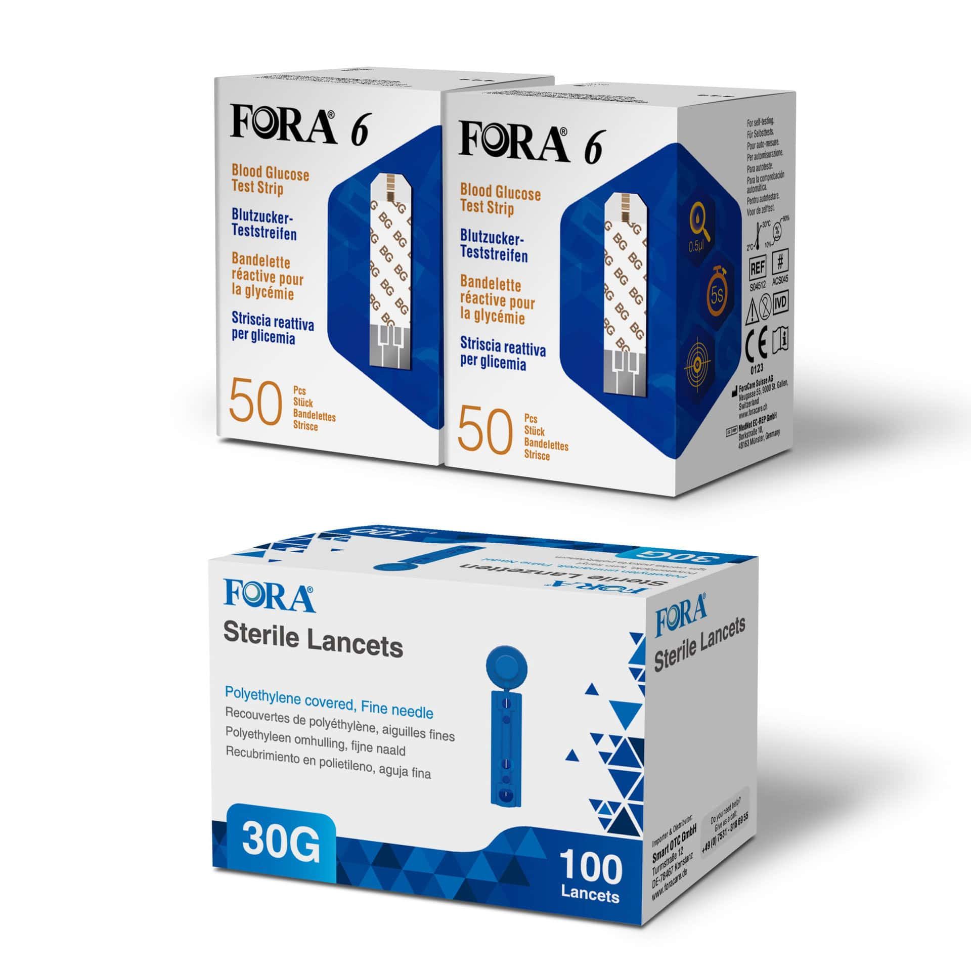 FORA 6 Strisce Reattive per il Glucosio + FORA Lancette 30G - The Tester