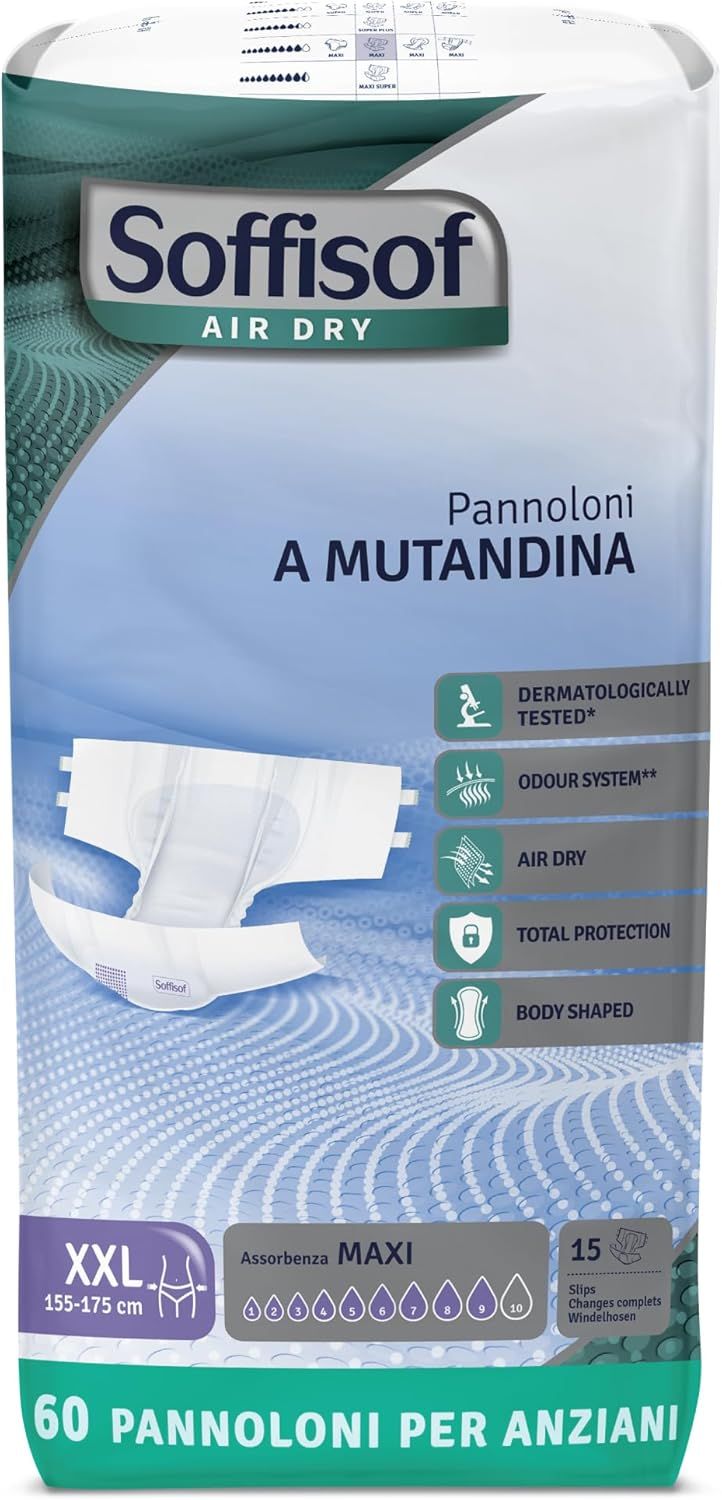 Soffisof Pannoloni con Adesivi sono la scelta ideale per chi desidera un pannolone ad alta capacità, comodo, sicuro e delicato sulla pelle. Una protezione studiata per adattarsi perfettamente alla persona, sia di giorno che di notte.