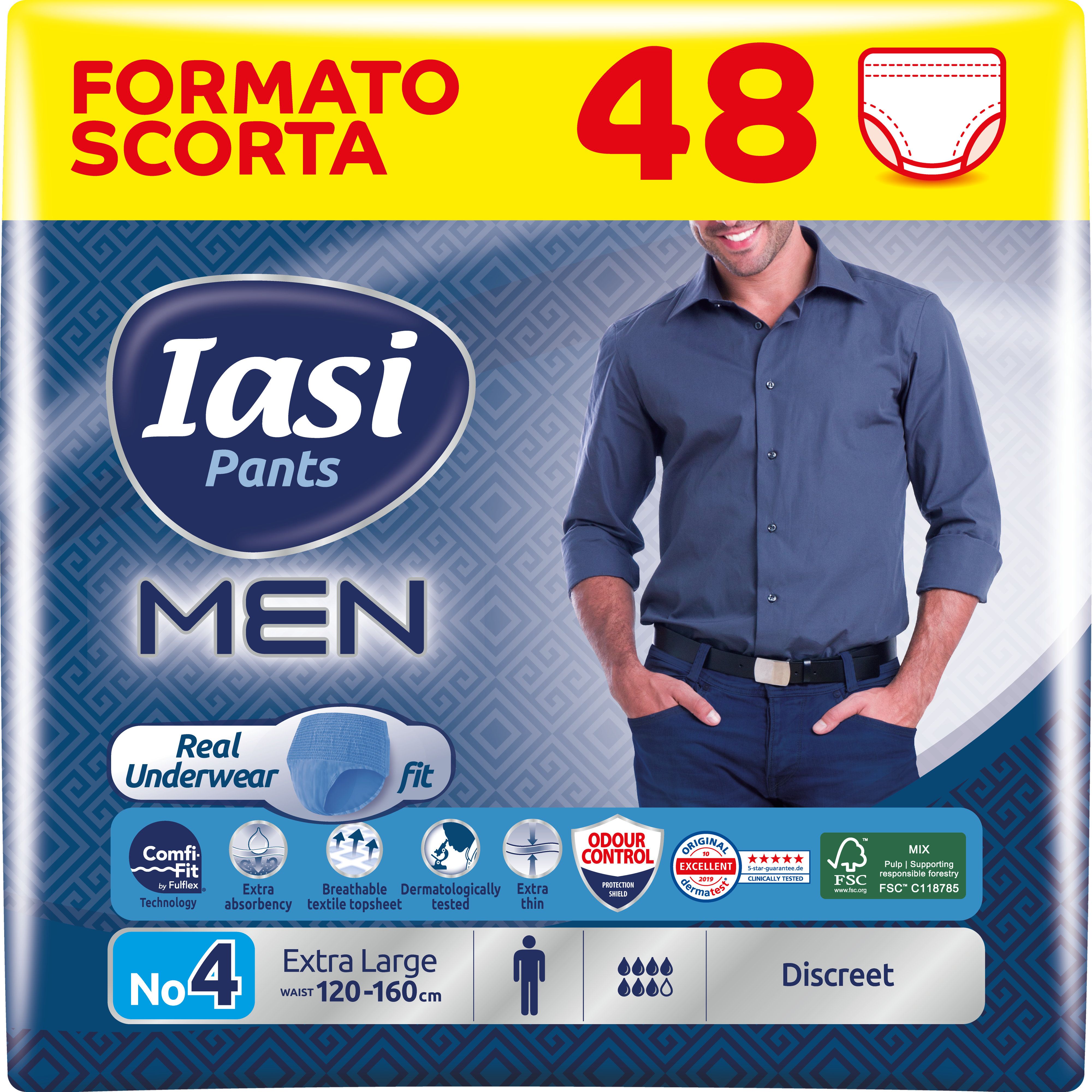 IASI Pants MEN, 48 Boxer Assorbenti monouso per Perdite Urinarie, Taglia L da Uomo, 48 Unità