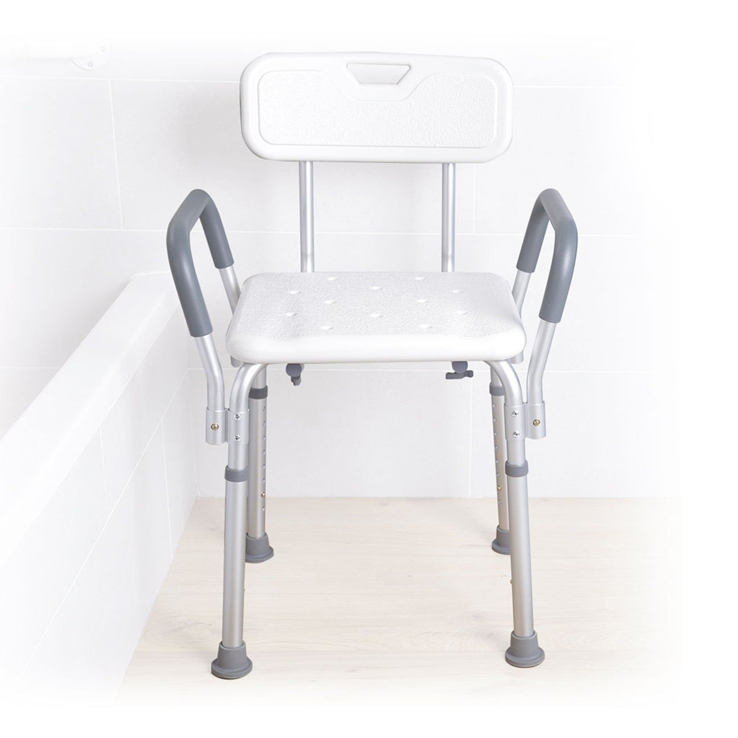 Sedia da Doccia Regolabile in Altezza con Schienale e Braccioli imbottiti