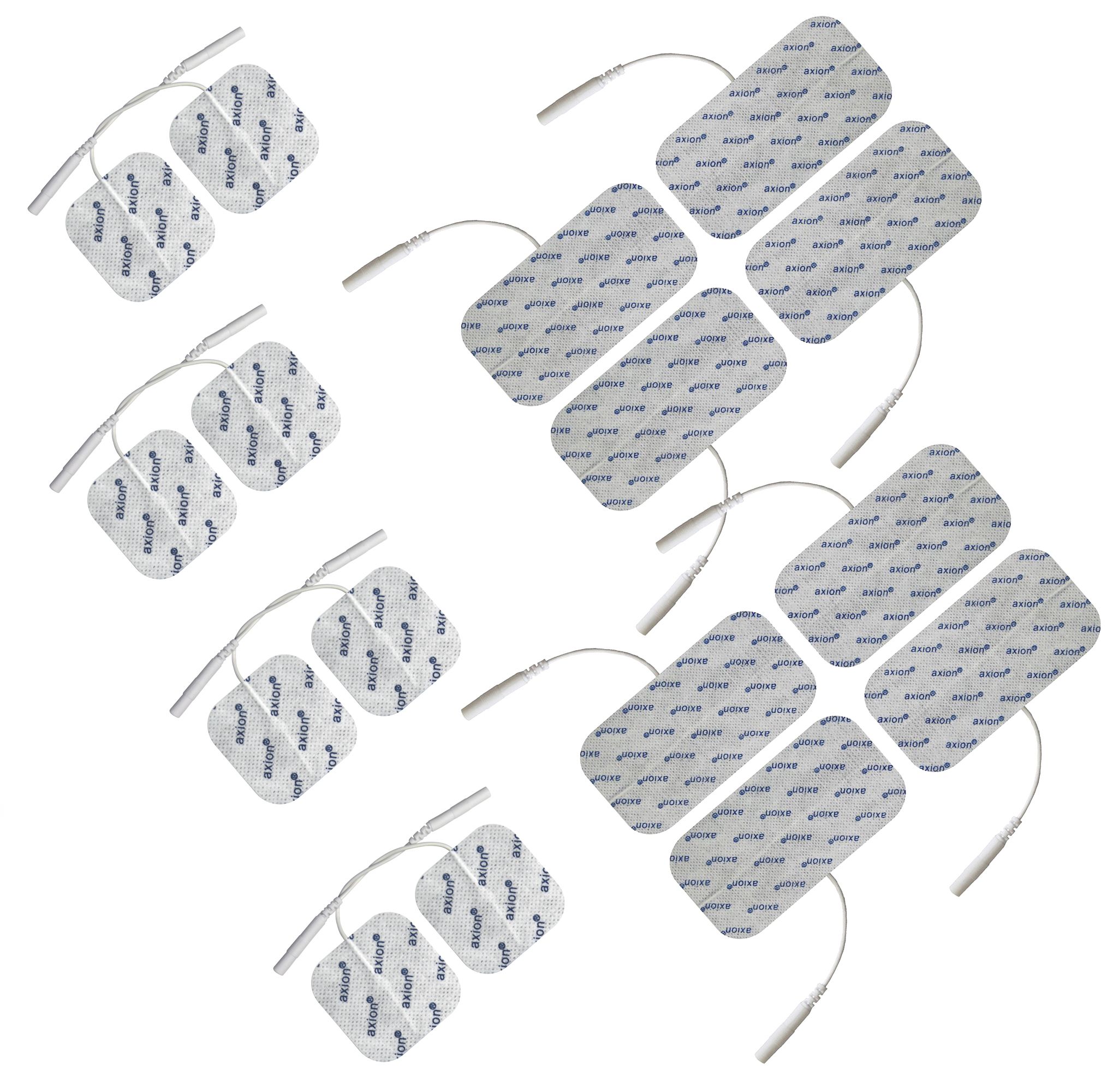 - 4 elettrodi per dispositivi TENS e trainer EMS delle dimensioni 100x50 mm e 50x50 mm. Gel pad di alta qualità, riutilizzabili e autoadesivi, prodotti da axion