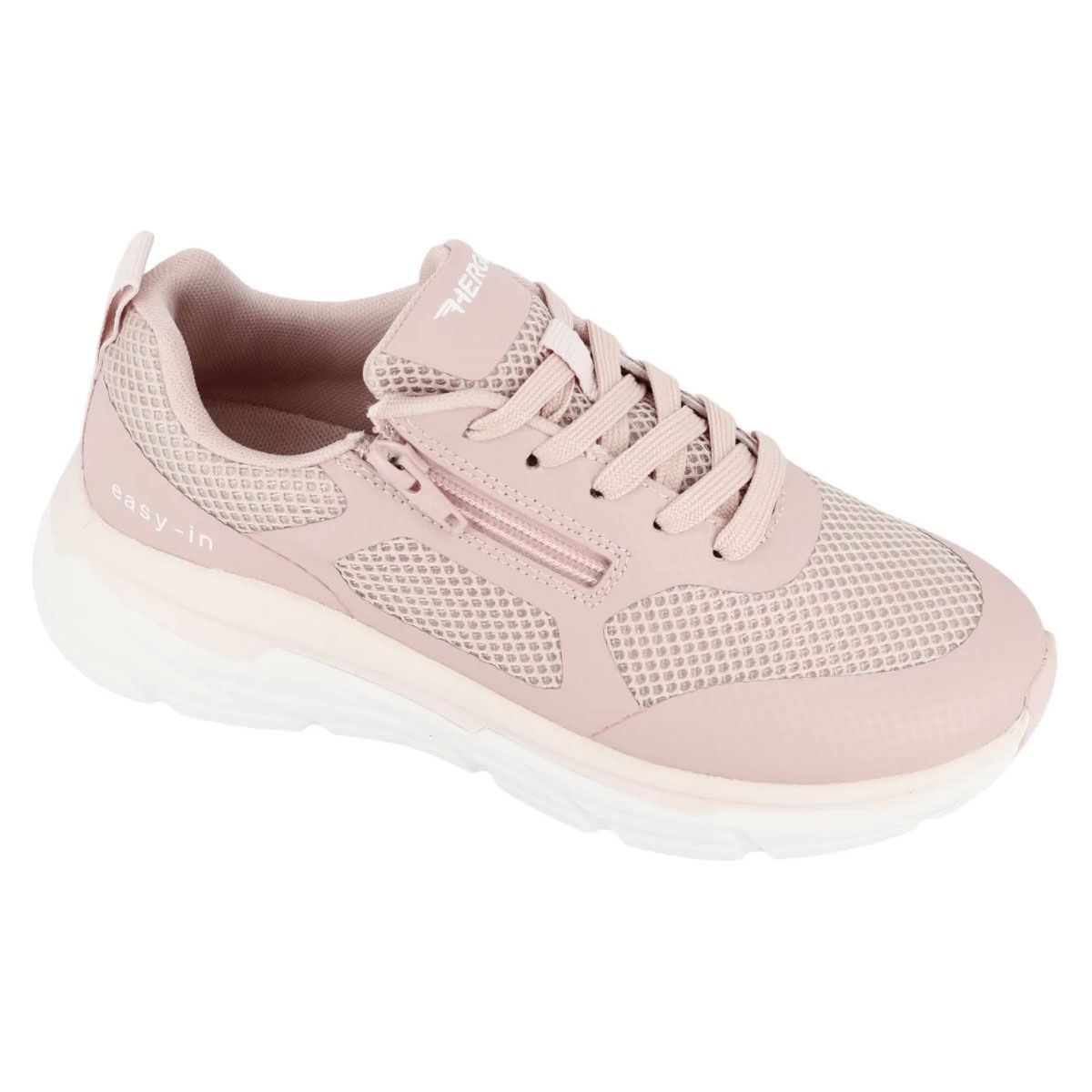 Sneaker leggera con plantare estraibile e zip laterale, facile da indossare.