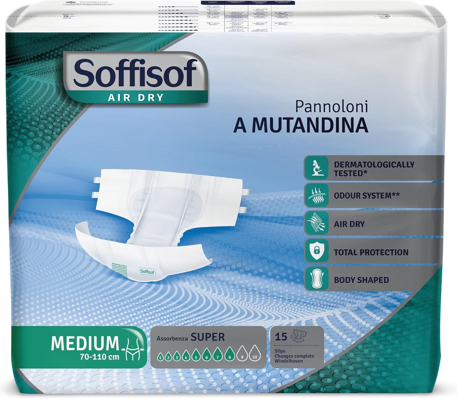 HomeArticoli sanitari e ortopediciIncontinenzaMutande per IncontinenzaSoffisof Air Dry Pannoloni con Adesivi Super
