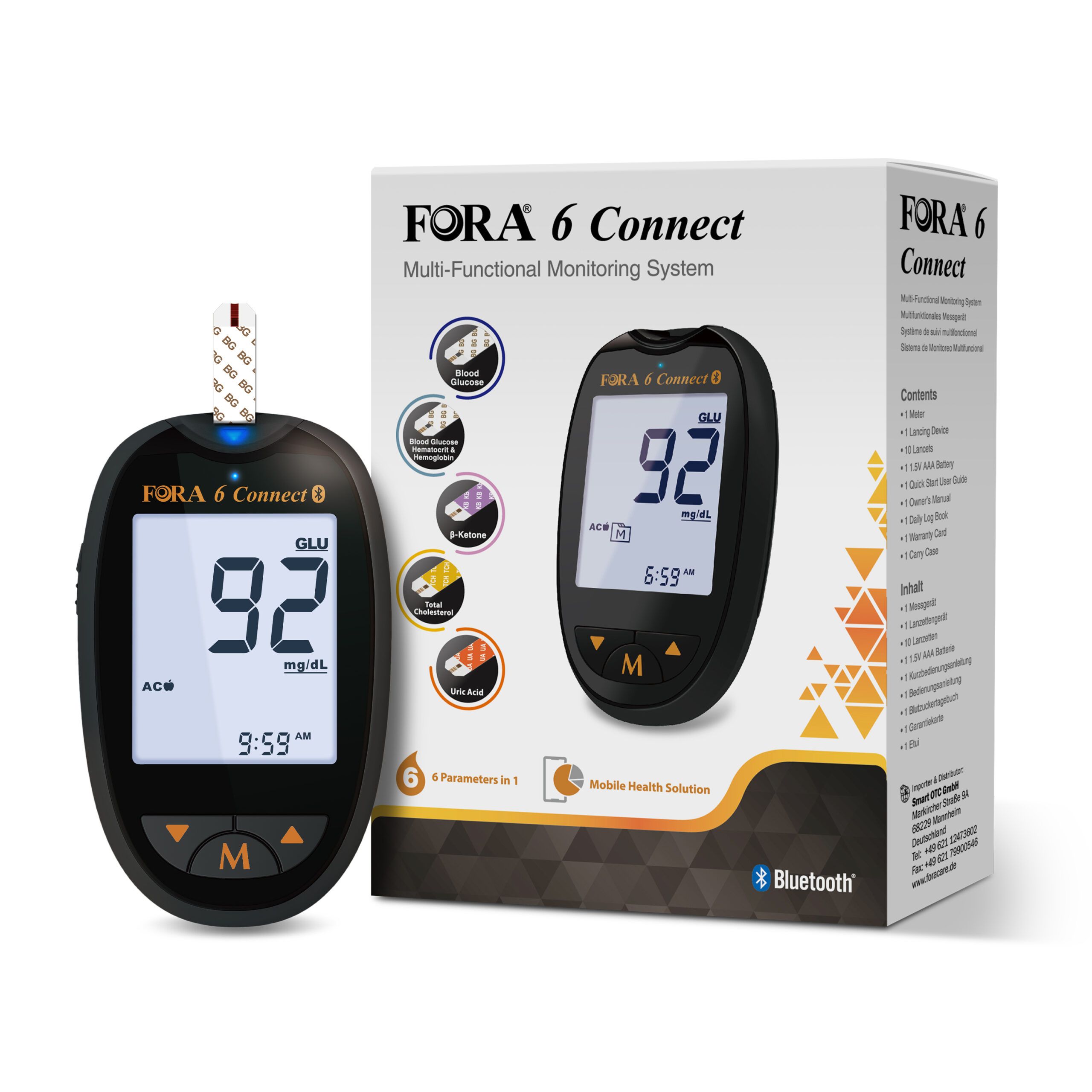 FORA 6 Connect | Misuratore di Glucosio, Ematocrito ed Emoglobina - mg/dl - The Tester