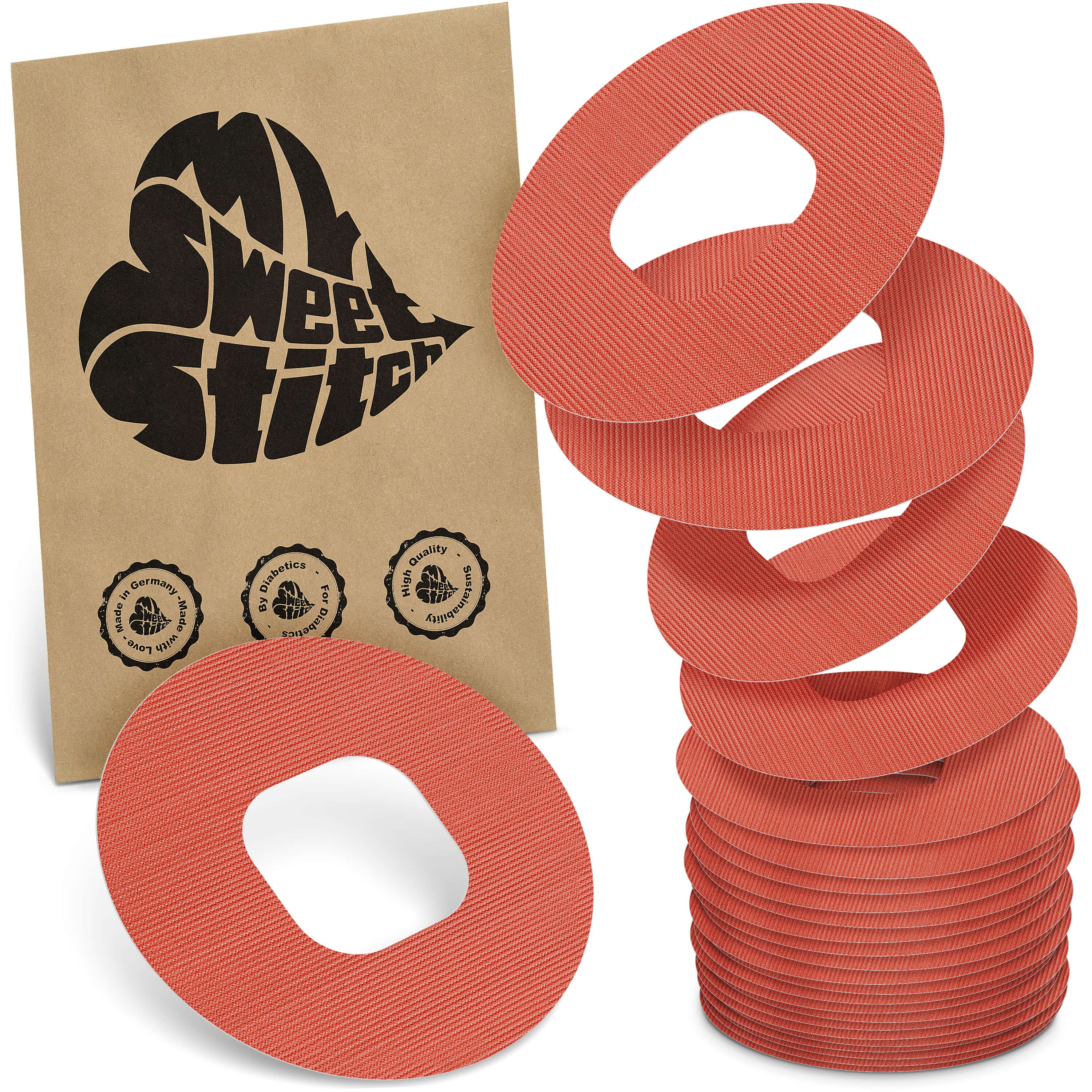 Ringpatch MySweetStitch per stabilizzare il sensore CGM con forma aperta e fissaggio mirato.