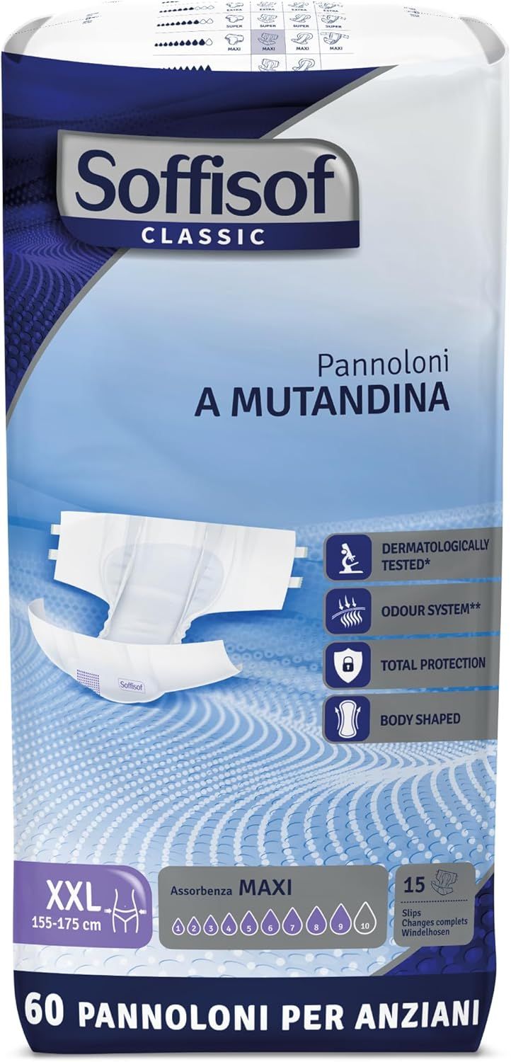 Soffisof Classic è la soluzione ideale per coloro che cercano una protezione affidabile e discreta contro l’incontinenza moderata. Un pannolone pensato per offrire benessere, libertà e serenità nella vita di tutti i giorni.