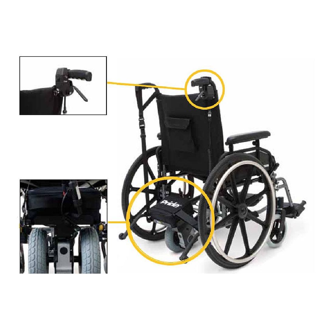 Power Glide Sistema di spinta assistita è un ausilio progettato per convertire carrozzine manuali in pratici mezzi motorizzati, ideale per anziani, persone disabili e chiunque necessiti di ridurre lo sforzo di spinta su lunghe distanze o terreni difficili.