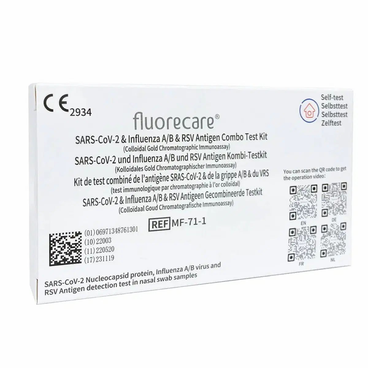 Fluorecare Test combinato antigenico per SARS-CoV-2, Influenza A+B & RSV, 1 pezzo