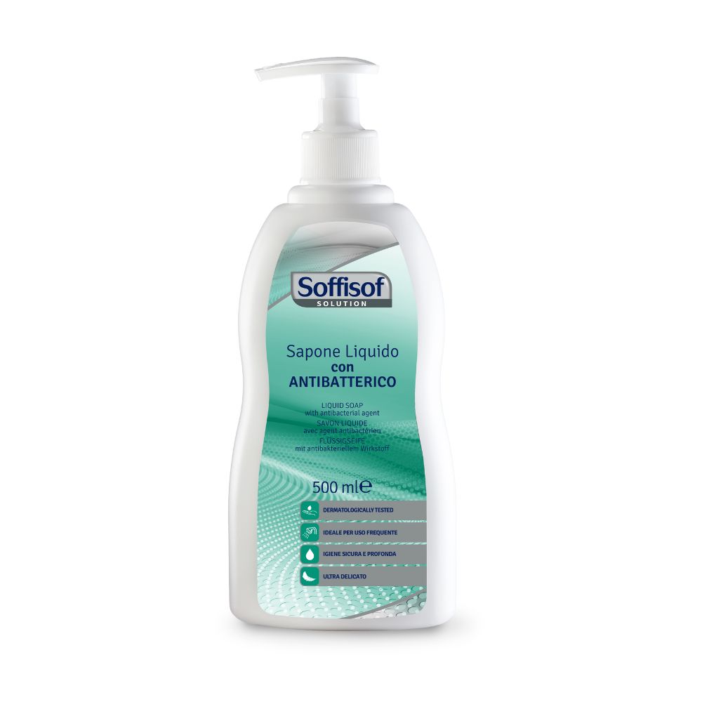 Grazie alla presenza di un agente antibatterico, il Sapone Soffisof assicura una detersione profonda e sicura, contribuendo a rimuovere germi e batteri. Perfetto per chi necessita di un'igiene accurata, anche più volte al giorno.