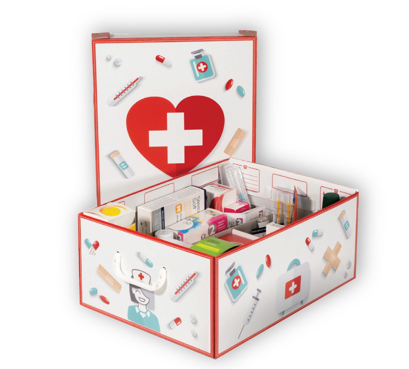 - 𝗢𝗿𝗴𝗮𝗻𝗶𝘇𝘇𝗮 𝗶 𝘁𝘂𝗼𝗶 𝗺𝗲𝗱𝗶𝗰𝗶𝗻𝗮𝗹𝗶: Spazioso contenitore misura 42x32x17,2 cm con divisore interno e 9 scomparti per riporre farmaci, pillole, cerotti, bende e siringhe, farmaci veterinari, sciroppi, integratori, vitamine; con fantasia a tema.