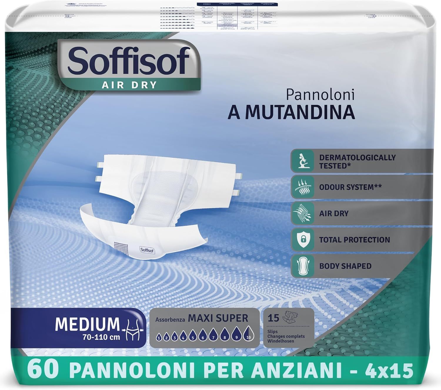 HomeArticoli sanitari e ortopediciIncontinenzaMutande per IncontinenzaSoffisof Air Dry Pannoloni con Adesivi Maxi Super
