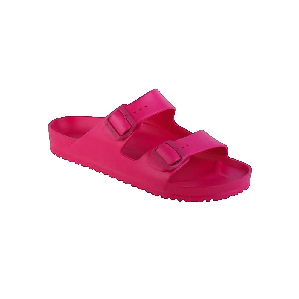 Sandali donna Birkenstock Arizona in pelle sintetica rosa, comodi e regolabili.