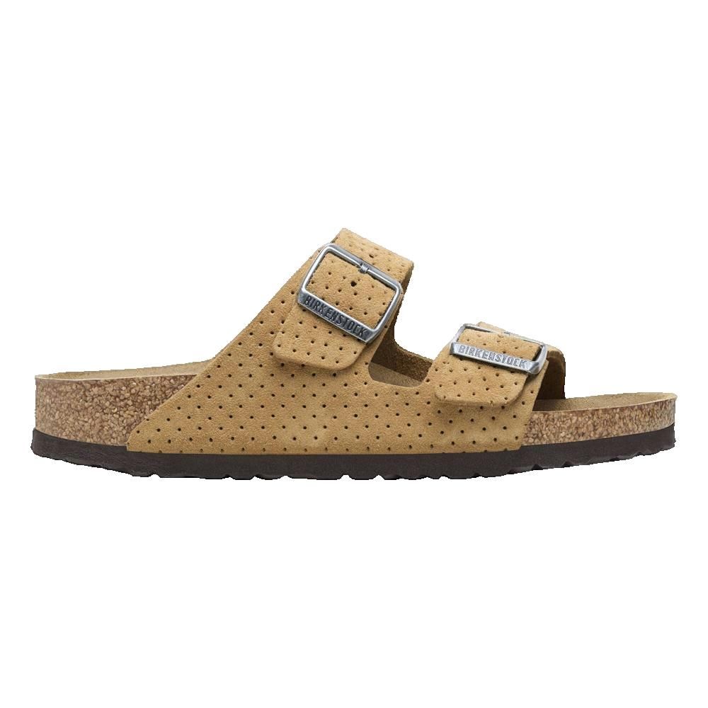 Sandali Birkenstock Arizona Normale per uomo adulto, beige con punti in rilievo, comfort e stile estivo.