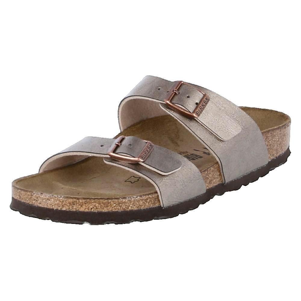 Sydney è un modello di successo del marchio Birkenstock per chi cerca una calzatura più sottile, ispirata al modello a due bande Arizona. Sydney presenta due bande meno larghe mantenendo il comfort del marchio grazie alla sua suola anatomica. Questa versione in metallo taupe è realizzata in materiale resistente Birko Flor.
