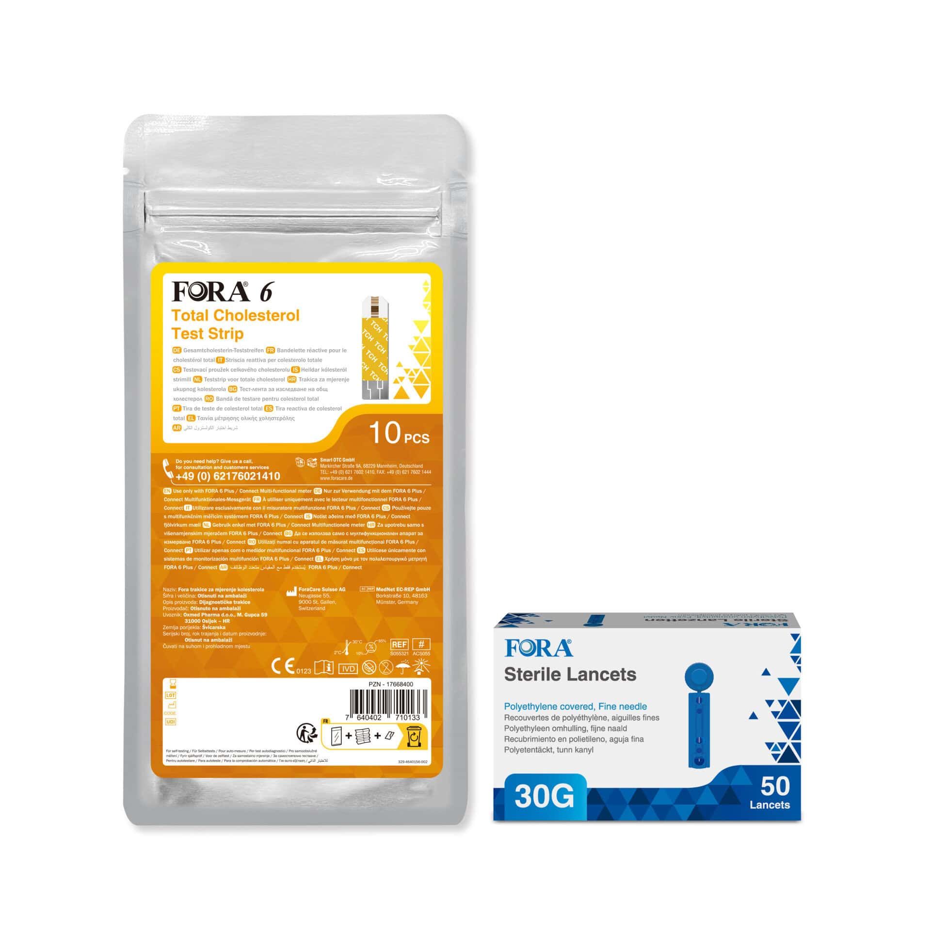 FORA 6 Strisce Reattive per il Colesterolo + FORA Lancette 30G - The Tester