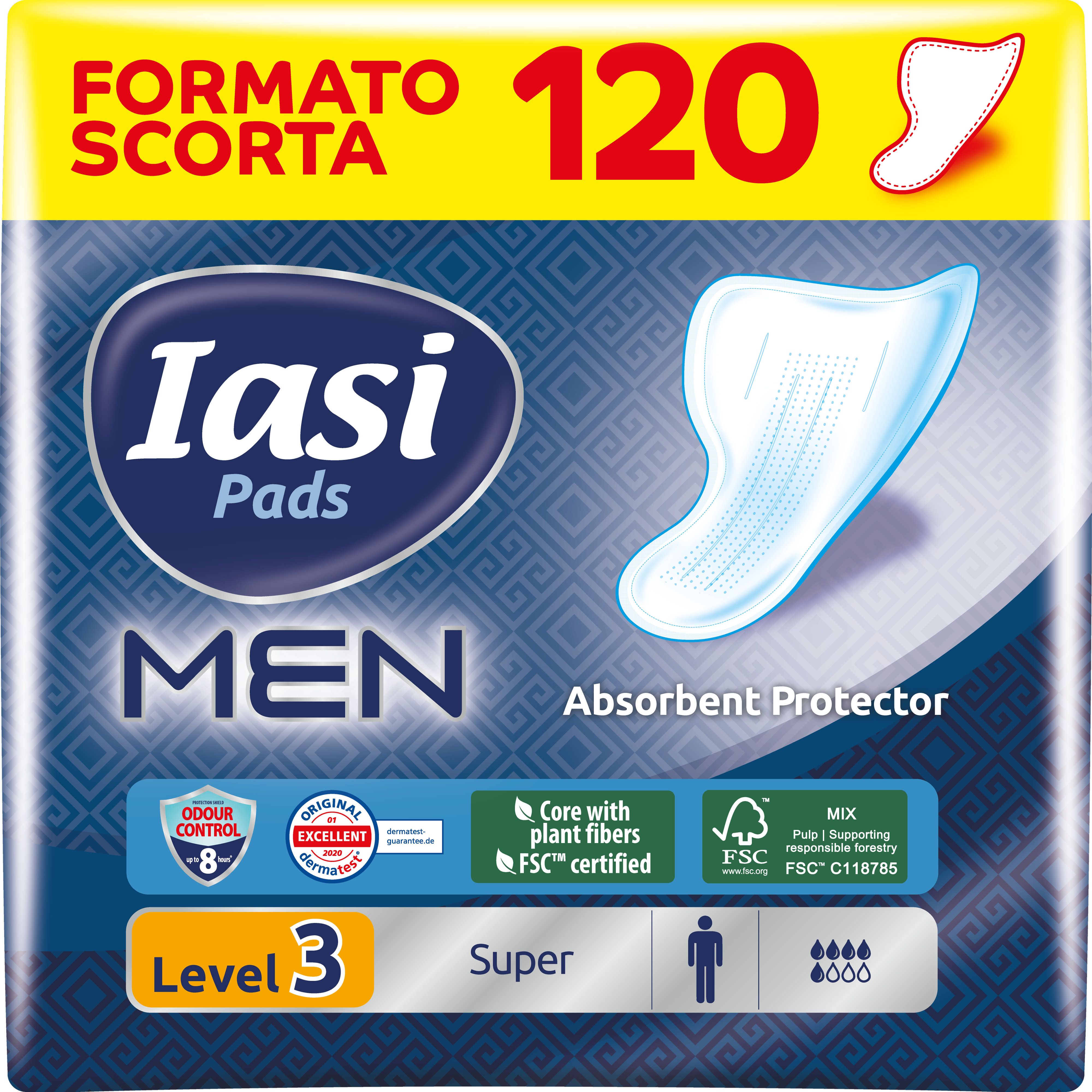 IASI MEN Super, Livello di Protezione 3, Assorbenti per perdite urinarie maschili medie, 120 Unità