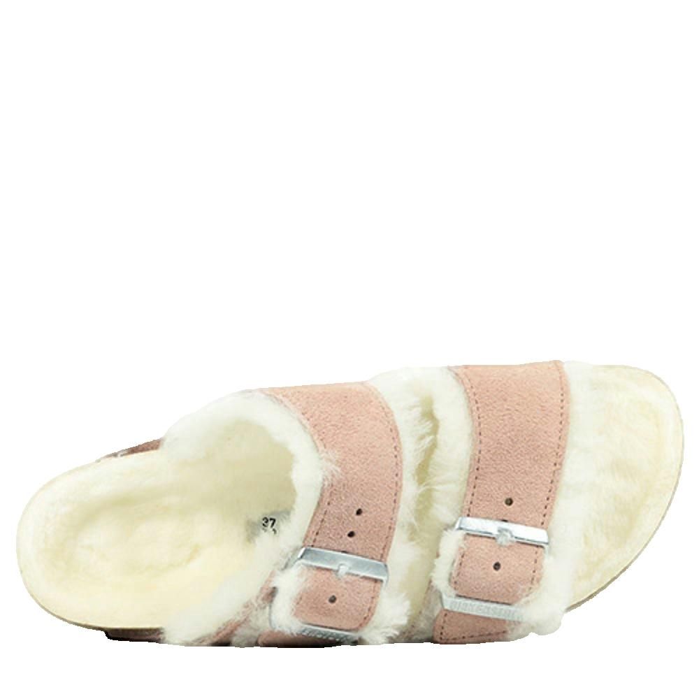 Sandali Arizona Sretta di Birkenstock in pelle rosa con fodera sintetica, comfort e stile per donna.